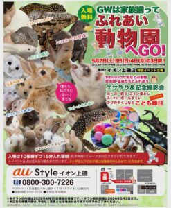 2026年5月2日(土)~5月4日(月)の3日間イオン上磯店にて昨年大好評をいただきました「ふれあい動物園」を開催!